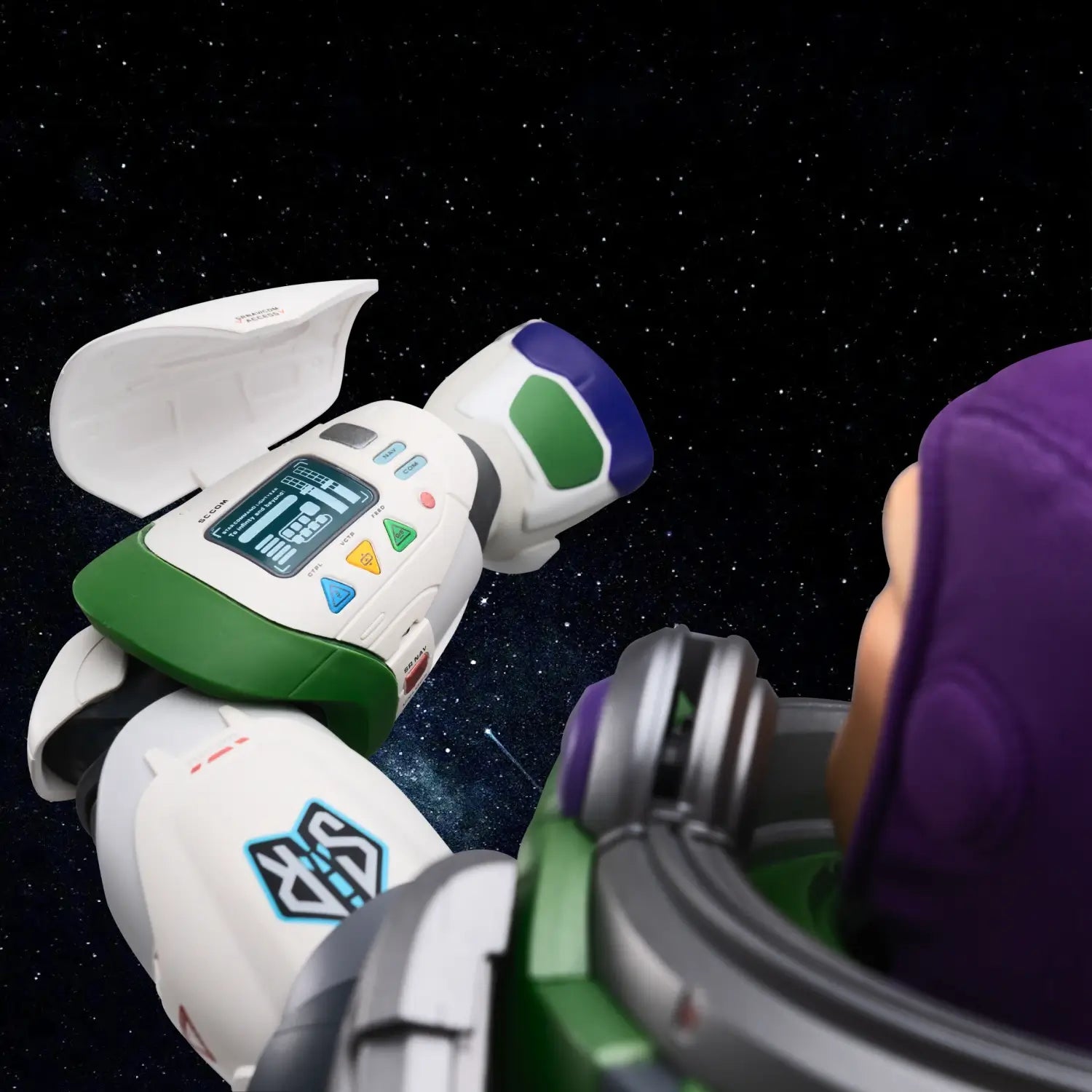 Flip-open the wrist communicator, chronicling Buzz's every mission and adventure.