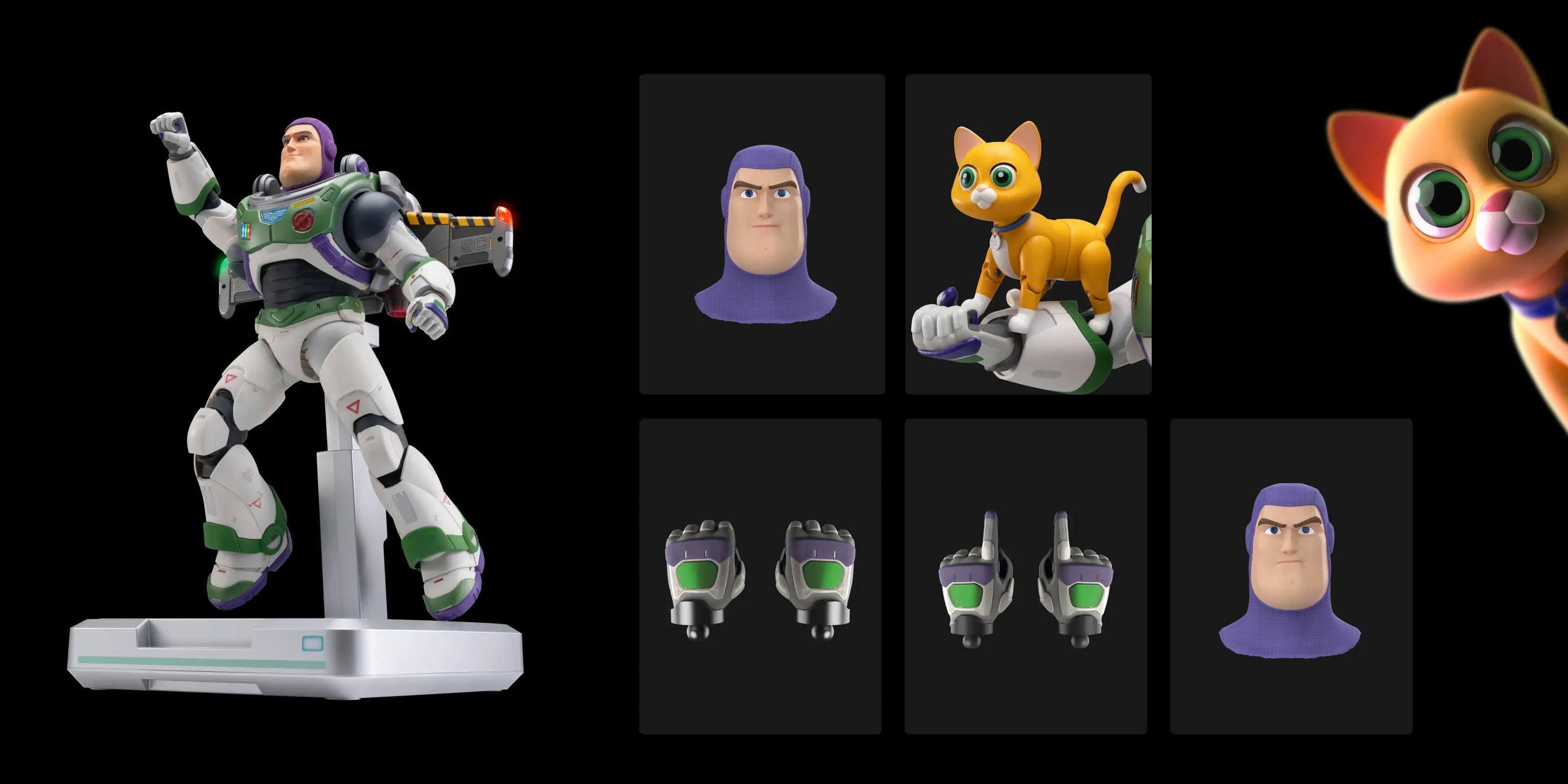 With two interchangeable facial expressions and a height-adjustable Space Ranger Stand, recreate Buzz Lightyear's flying actions with the included automated XL-15 Jetpack. The adorable robot cat Sox will accompany Buzz, adding a fun interactive element to the adventure.