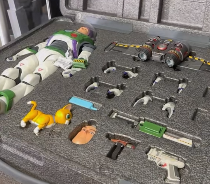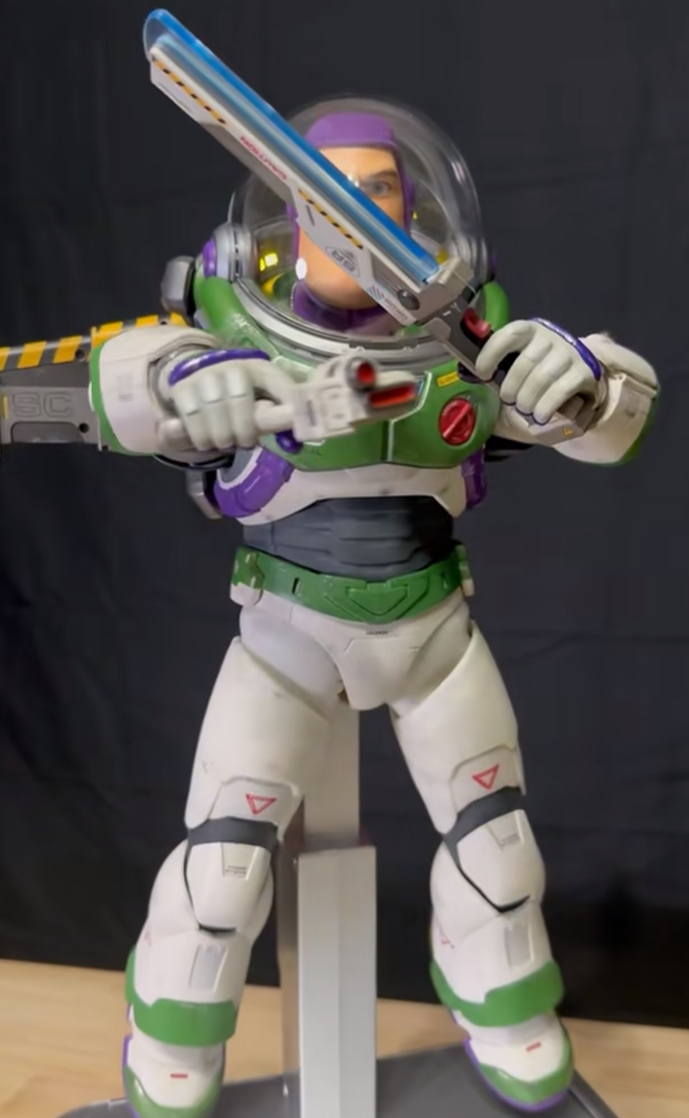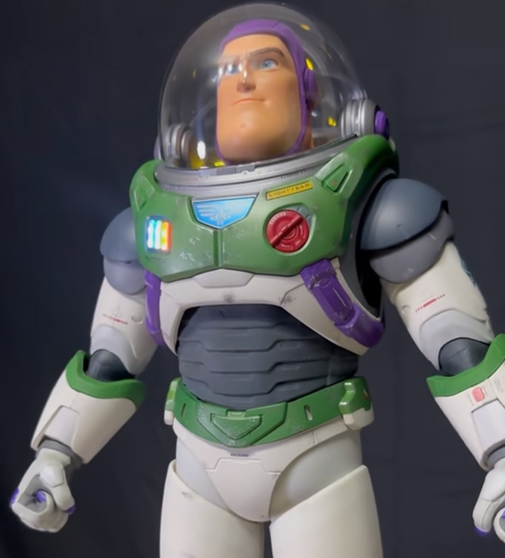 Featuring 23 patented high-precision servos with over 50 microchips, Buzz Lightyear has newly developed custom-shaped servos, authentically showcasing the finesse in fluid movements in humanoid form.