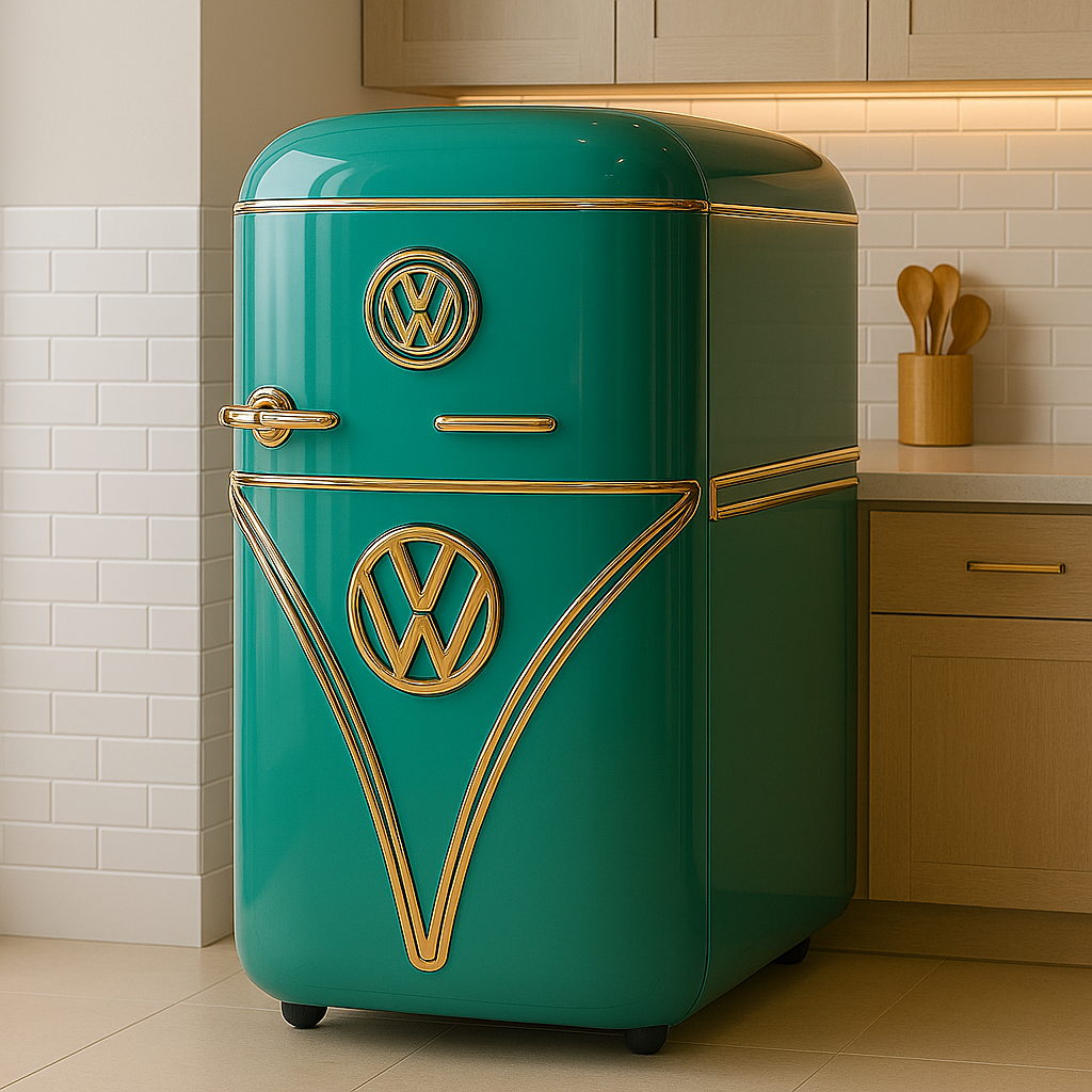 This retro Volkswagen-style fridge is everything l hoped for and more. The emerald teal finish with gold accents brings an unmatched level of elegance and charm to my kitchen. lt doesn't just look stunning-it performs incredibly well, with smooth cooling and quiet operation. l've styled my kitchen around it, and the compliments haven't stopped! lt's both a functional appliance and a centerpiece of design. lf you're looking to combine bold personality with premium practicality, this is the fridge to get. Total 10/10 from me!