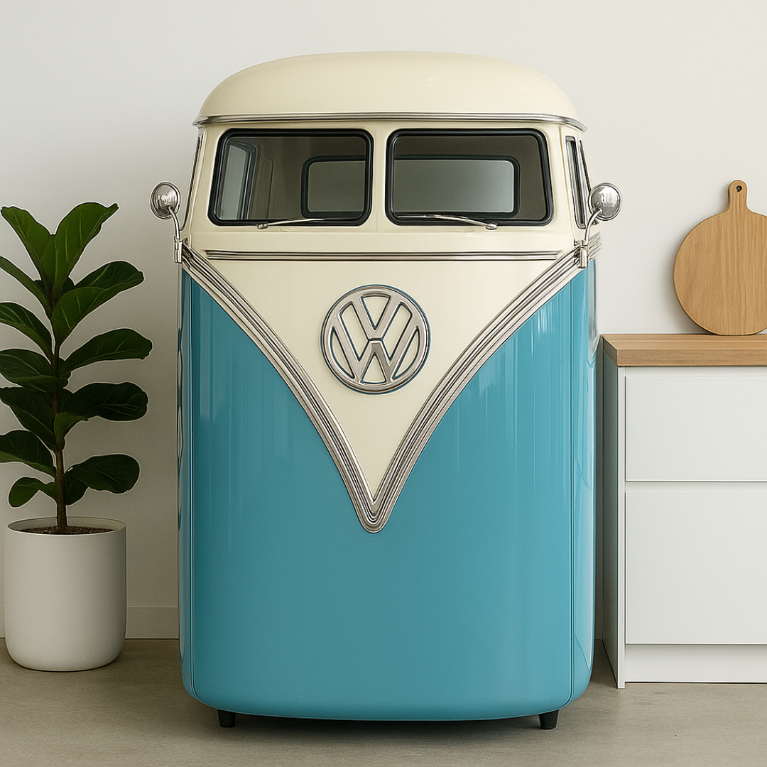 The Axuro FridgeVan™ fuses the iconic VW Bus design with sleek refrigeration tech. It’s not just a fridge—it’s a statement piece that adds vintage flair and creative personality to kitchens, studios, lounges, or shops.