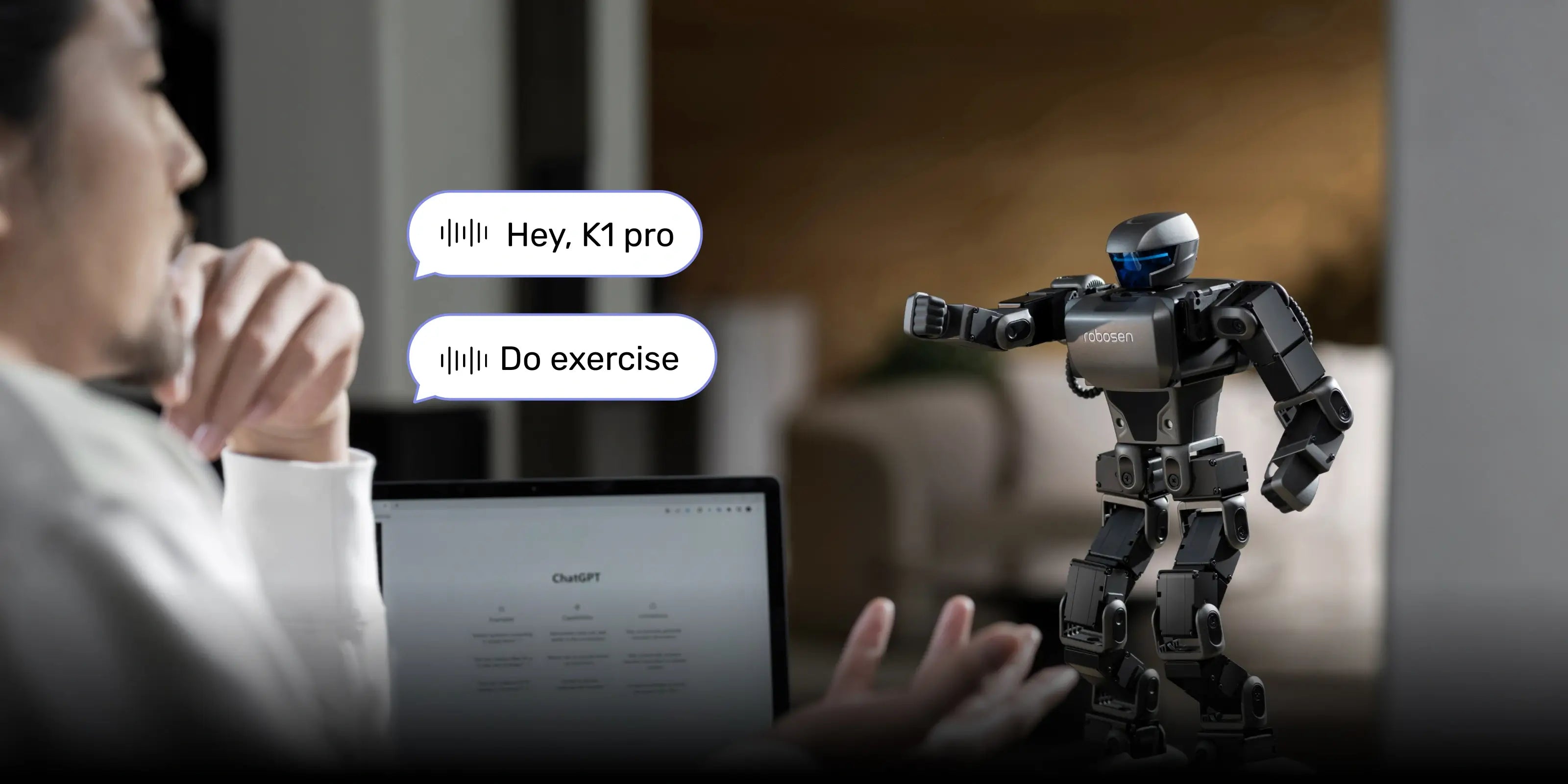 Use preset voice commands to wake up or control the robot.