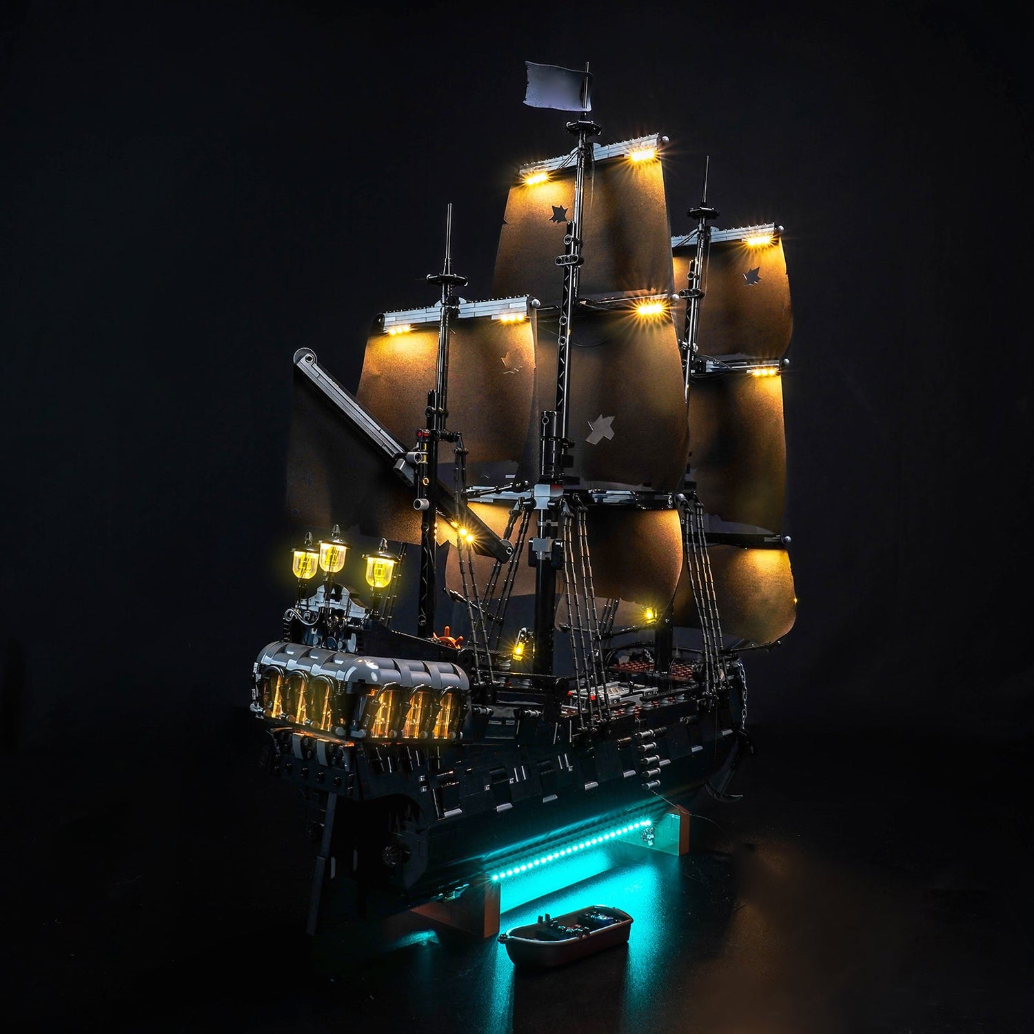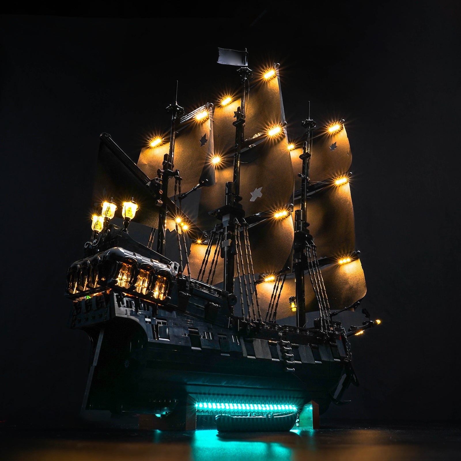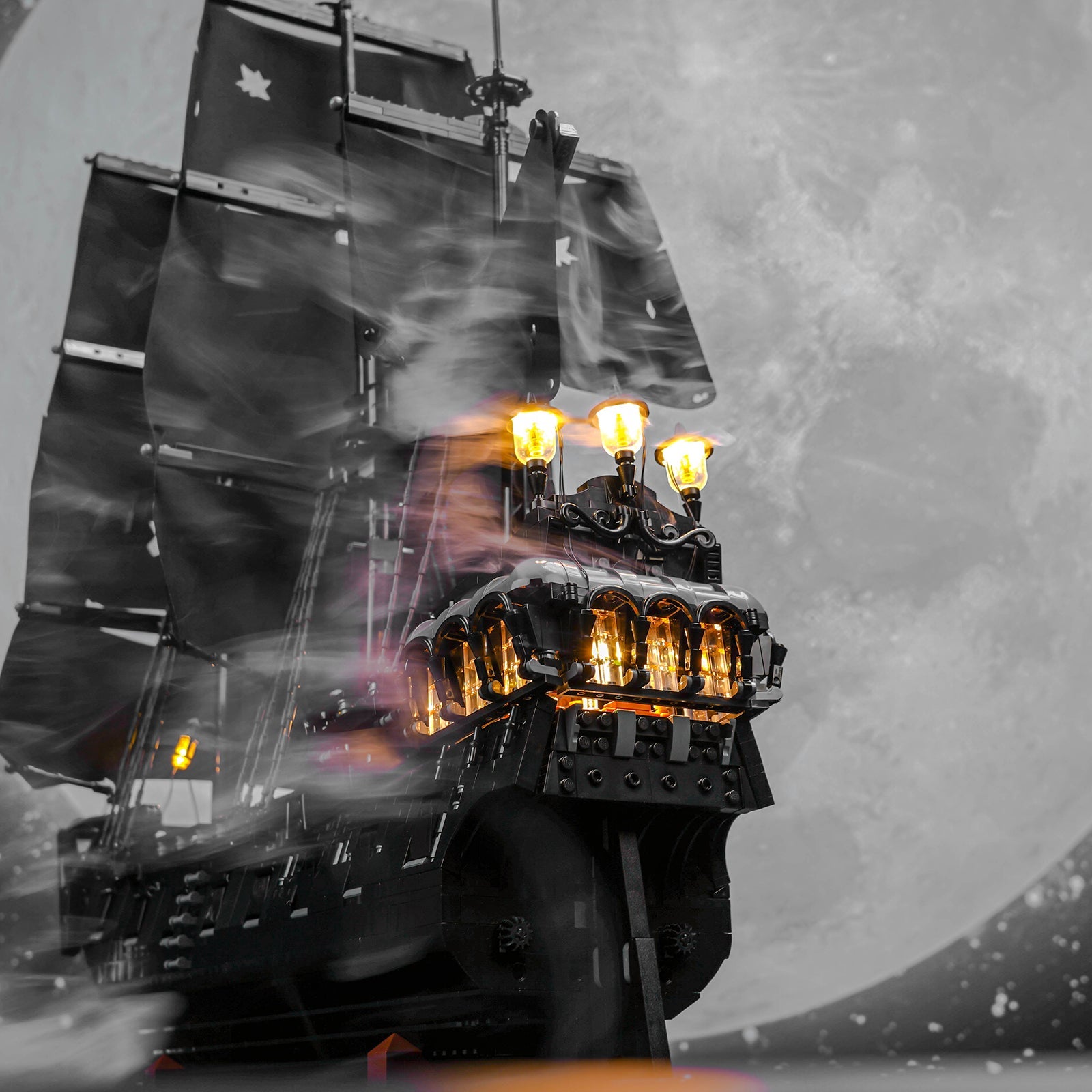 Based on the original Remote Control Version, this version features upgraded cannon lighting effects. In addition to the ability to freely adjust the lighting mode and brightness, as well as turn the lights on and off remotely, the addition of realistic muzzle lights on both sides of the hull adds an even more menacing presence in the dark. Each cannon light is strategically placed to complement the warm lighting on the deck and cabin, enhancing the visual impact of the display.