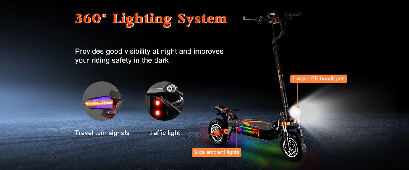Outfitted with powerful LED headlights, taillights, RGB light strips, rear warning lights, and side lights, the lighting system ensures visibility and safety during nighttime rides—while adding a stylish, standout look.